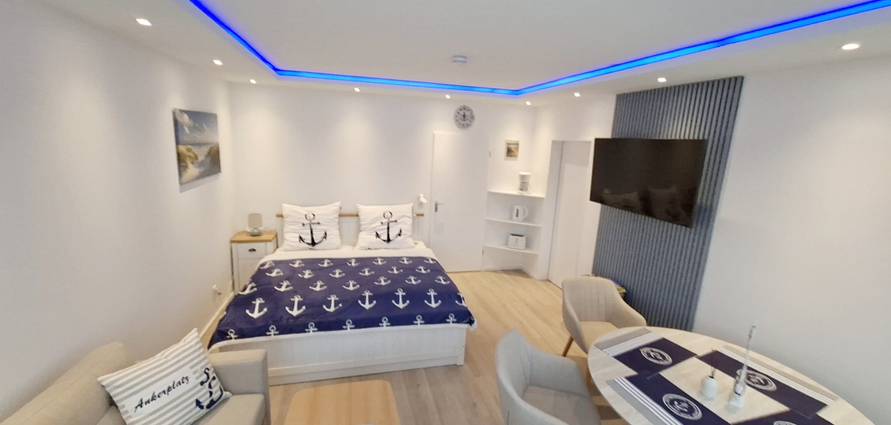 Diese liebevoll gestaltete, im November 2025 teilrenovierte und neu eingerichtete 35 qm große Ferienwohnung im 2. Obergeschoss mit Aufzug bietet Platz für 4 bis 5 Personen und alles, was Sie für einen erholsamen Urlaub am Meer benötigen. Die Lage überzeugt: Nur rund 100 Meter vom feinsandigen Strand entfernt und in unmittelbarer Nähe zur Promenade, zum Yachthafen, zu Grünanlagen sowie zahlreichen Restaurants und Freizeitangeboten.