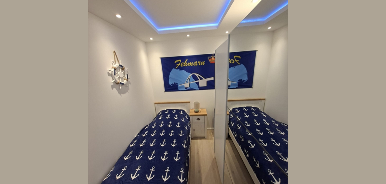 Im separaten Schlafzimmer stehen zwei gemütliche Einzelbetten bereit sowie ein Kleiderschrank, der ausreichend Platz für Ihre Urlaubsgarderobe bietet.